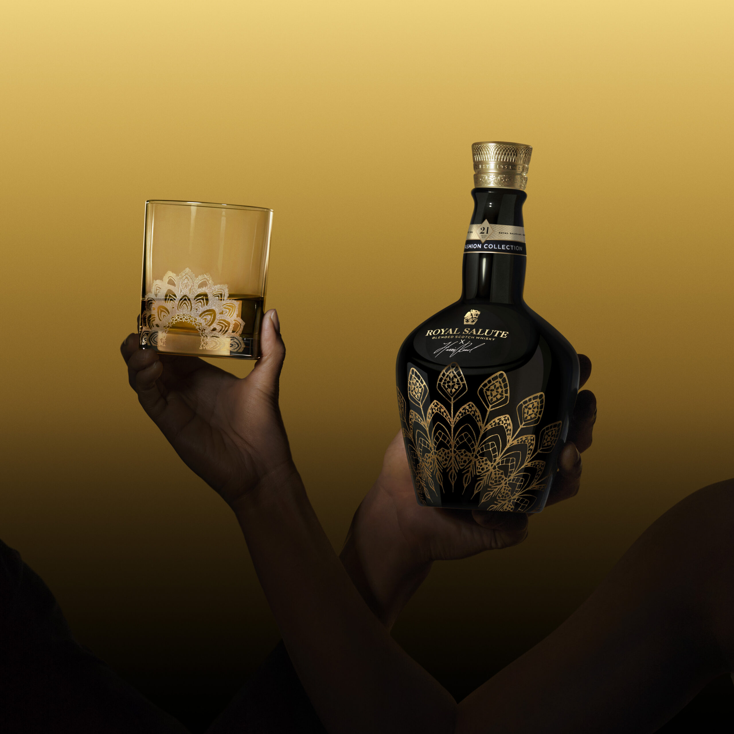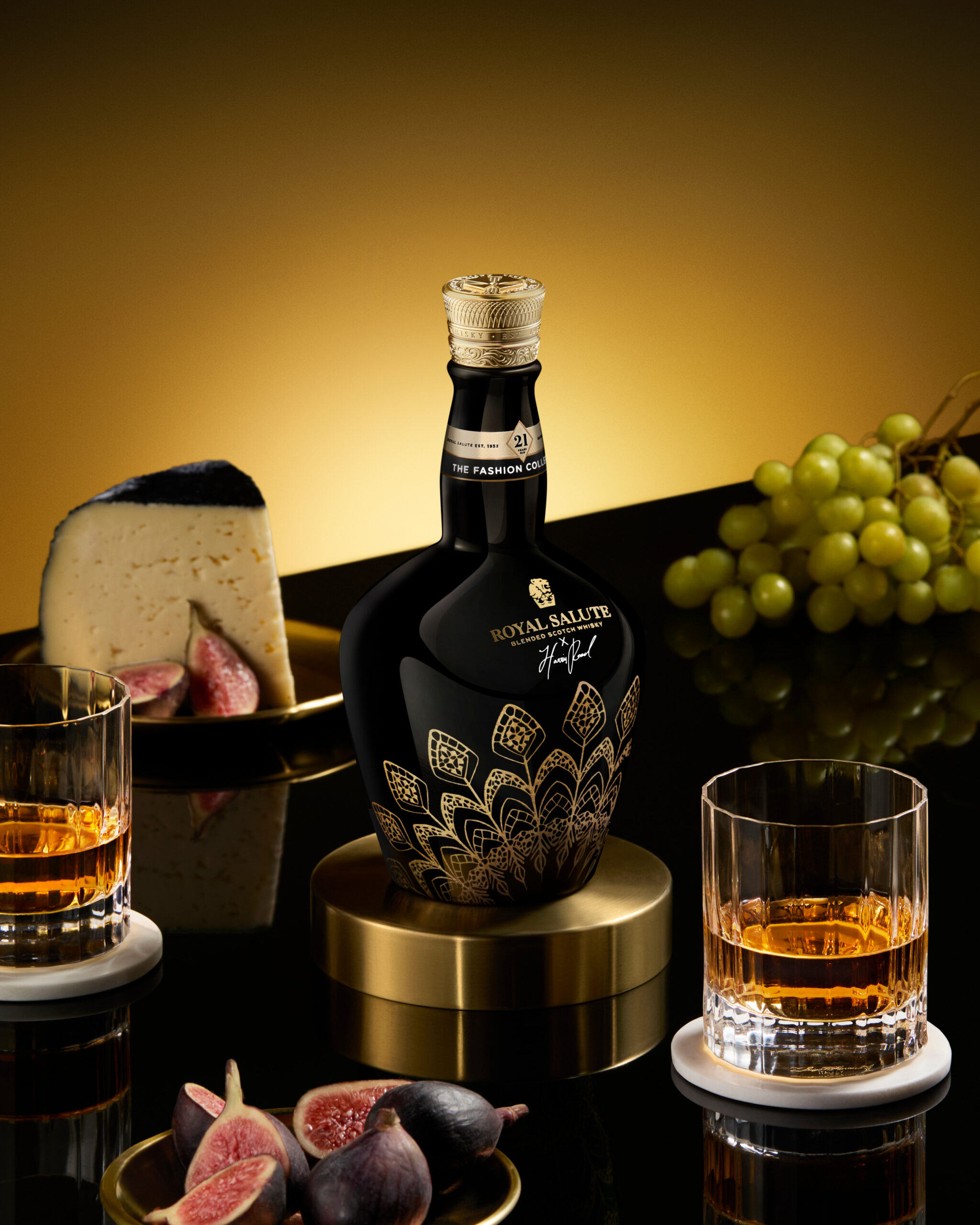 Each crown takes a unique form, elegantly adorning the flagons with an intricate lace motif inspired by Reed’s demi-couture designs and exploring other facets of his captivating theatrical style. This edition showcases Royal Salute’s commitment to craftsmanship and telling captivating stories in the world of whisky.